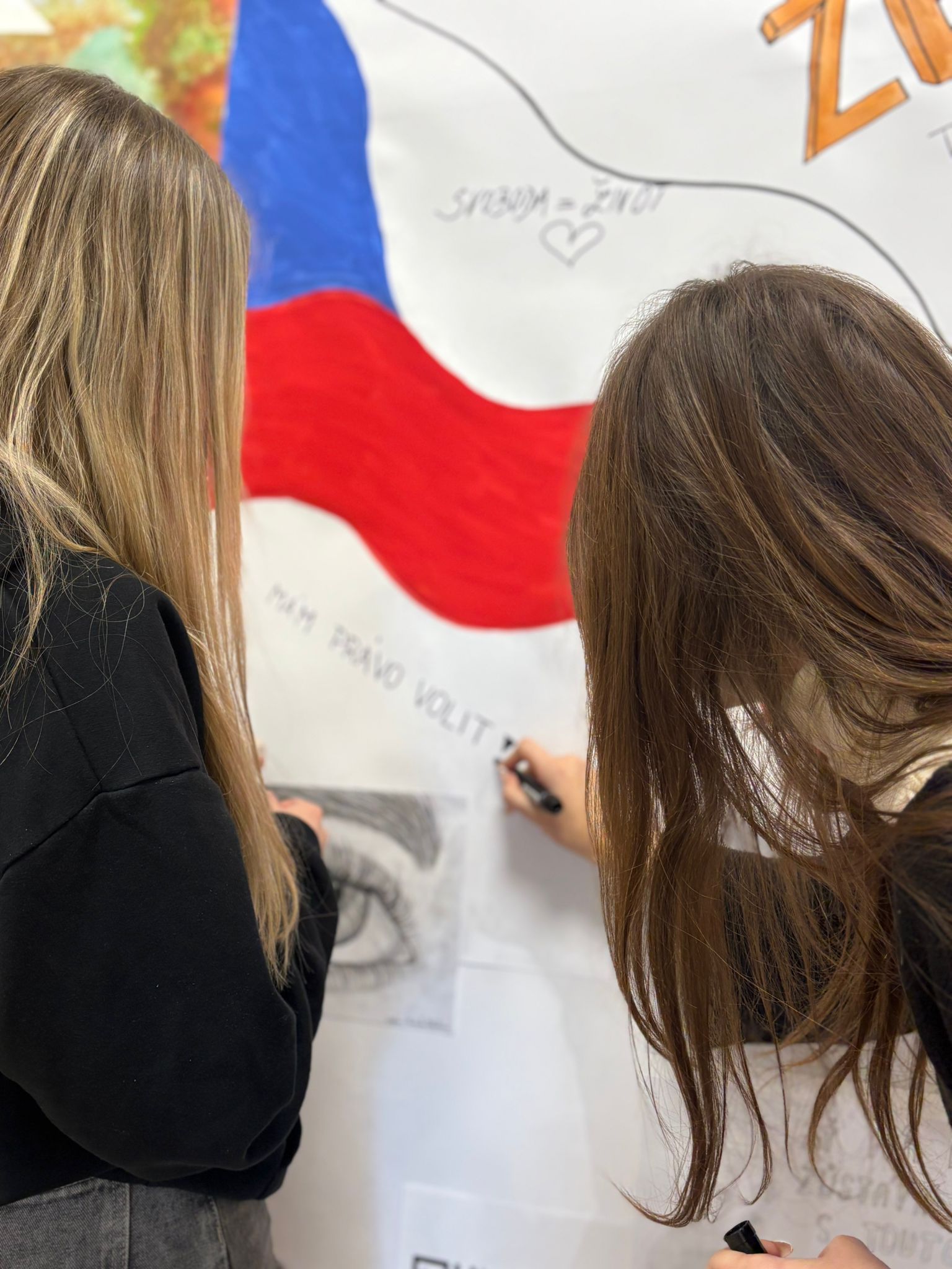 Děkujeme všem, kteří k nám zavítali během listopadových Dnů otevřených dveří. Zatímco na gymnáziu si návštěvníci mohli připomenout Sametovou revoluci a napsat na speciálně vytvořenou Zeď svobody své vlastní motto, na sošce se kromě jednotlivých oborů prezentovaly firmy a společnosti, které se školou úzce spolupracují.